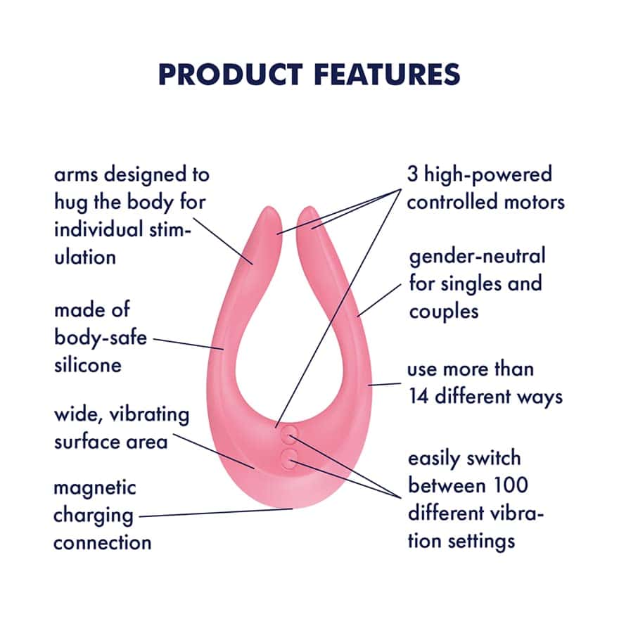 Limitless possibilities. Total euphoria. Unleash a world of sensation with the Satisfyer Endless Joy, a high-performance versatile multi-use vibrator designed to satisfy every craving. Whether used against, on top of, in, or under, this pink creative play device adapts to your body with unparalleled flexibility. As a premier 3-motor sex toy, it features independent power sources that allow for 100+ possible vibration combinations, making it one of the most customizable and powerful multi-position vibrators on the market today.